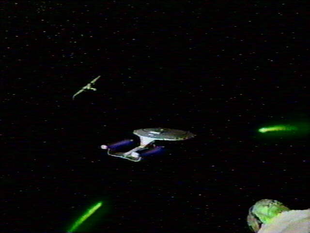 Here are a series of pictures from my favorite episode of Star Trek- The Next Generation. This episode had it all. A great time travel story, very good acting, great music, awesome special effects including one of the best battle scenes you will ever see on tv and even a romantic twist. This episode is widely considered to be the best that STNG turned out. Click on any of the selections below to see this incredible episode in action!